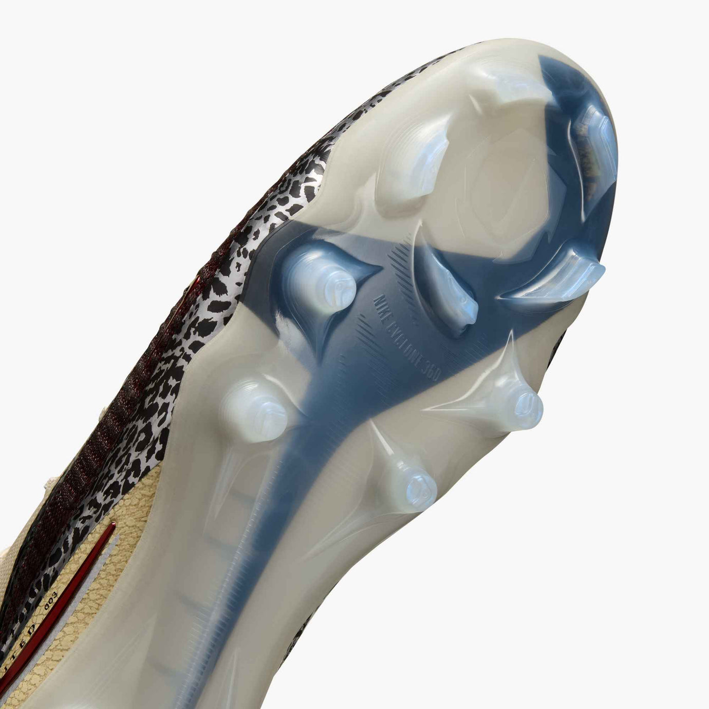 - Het Cyclone 360 cirkelvormige tractiepatroon is strategisch geplaatst in de voorvoet en helpt je snel te landen en te draaien.